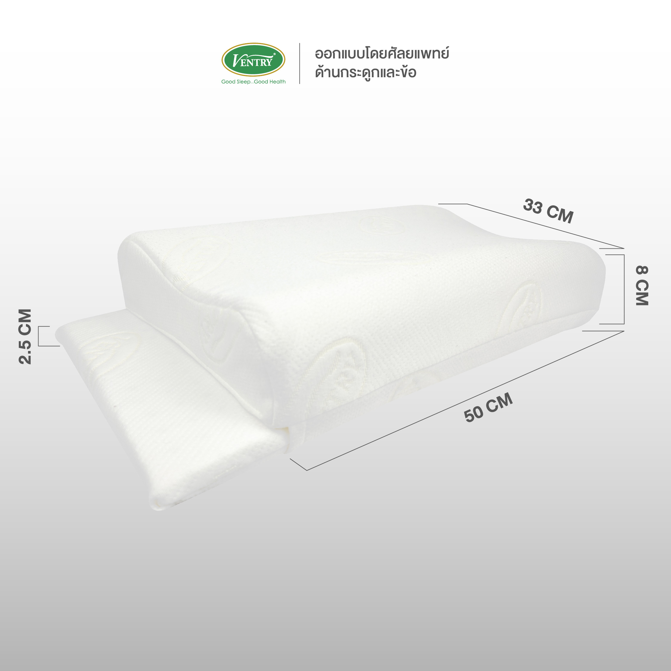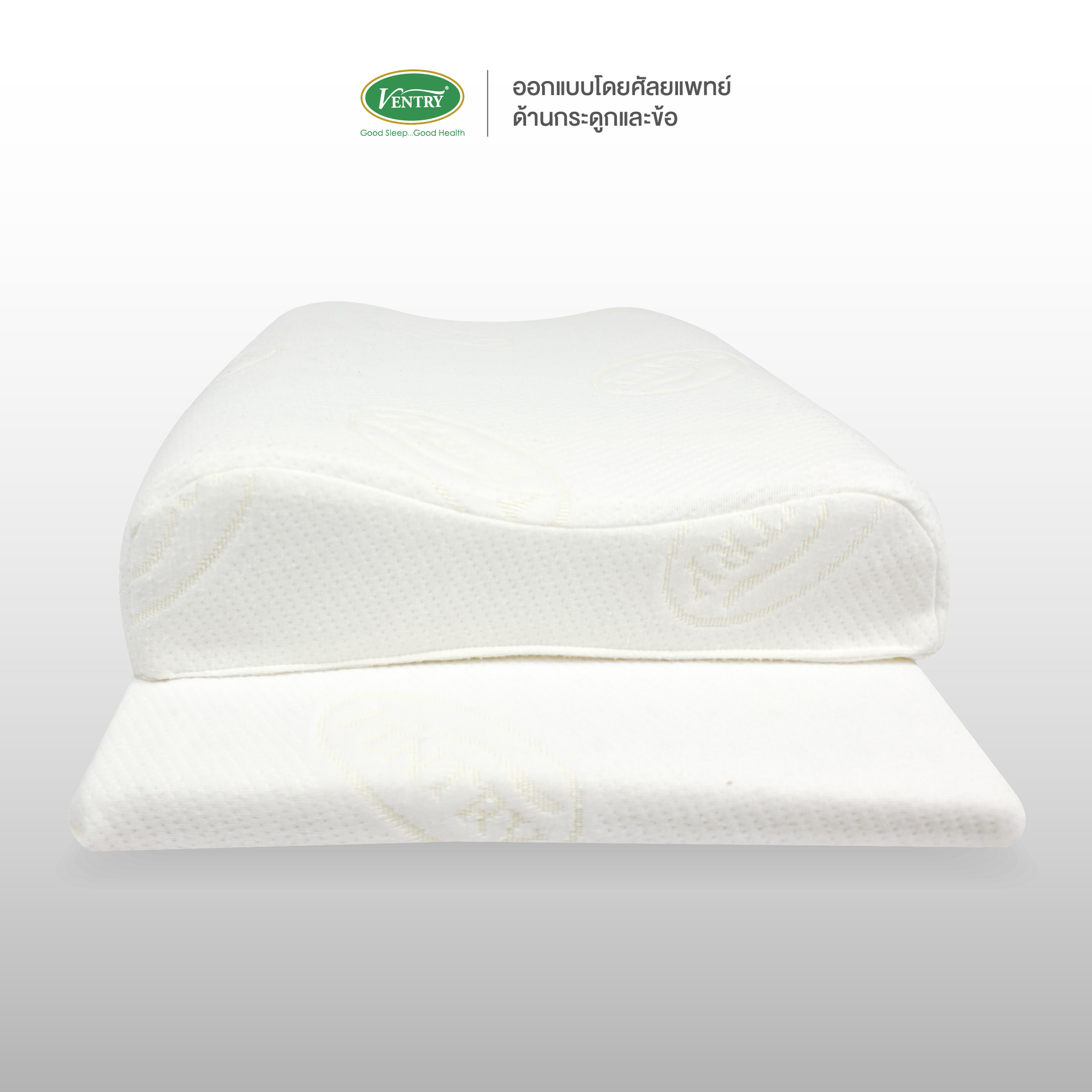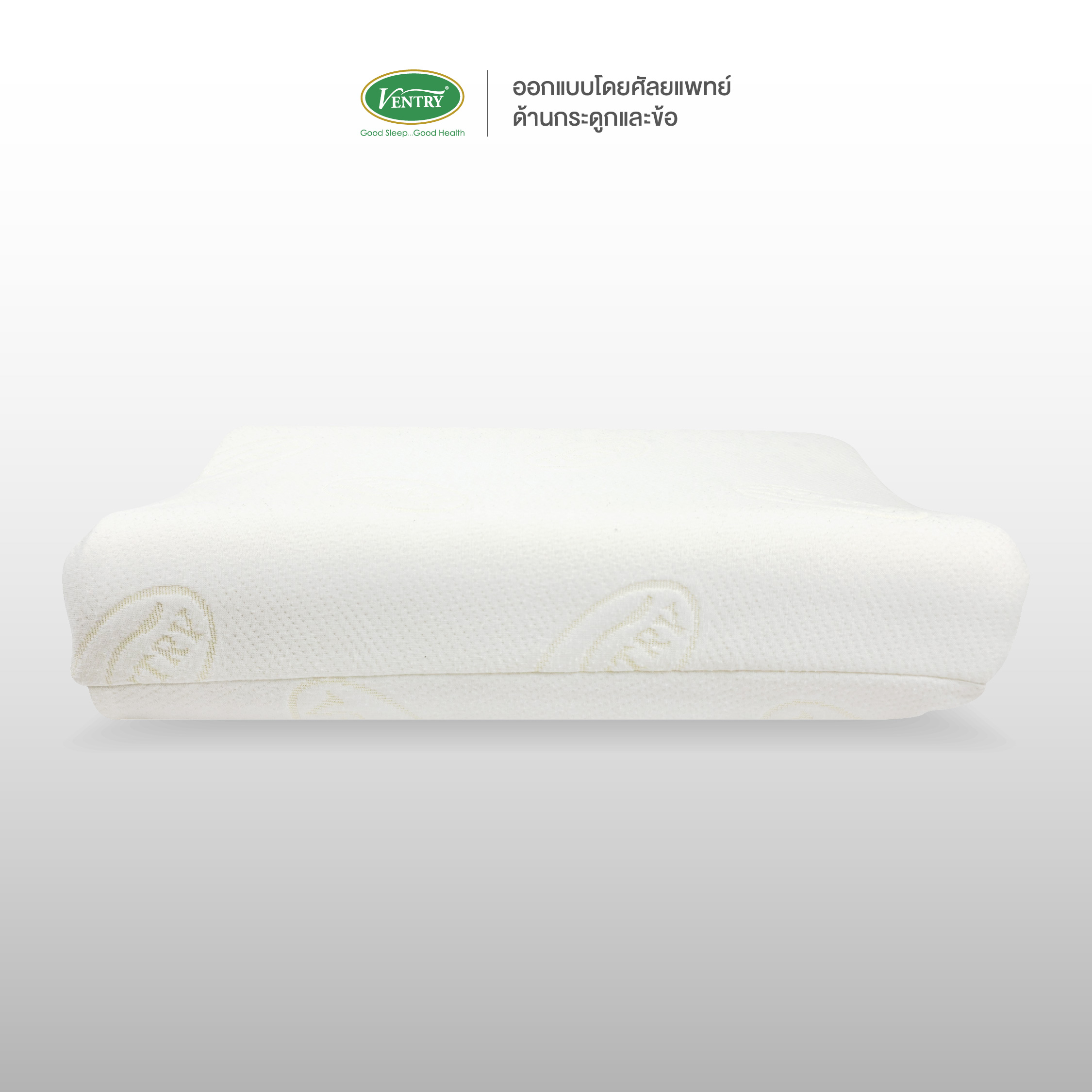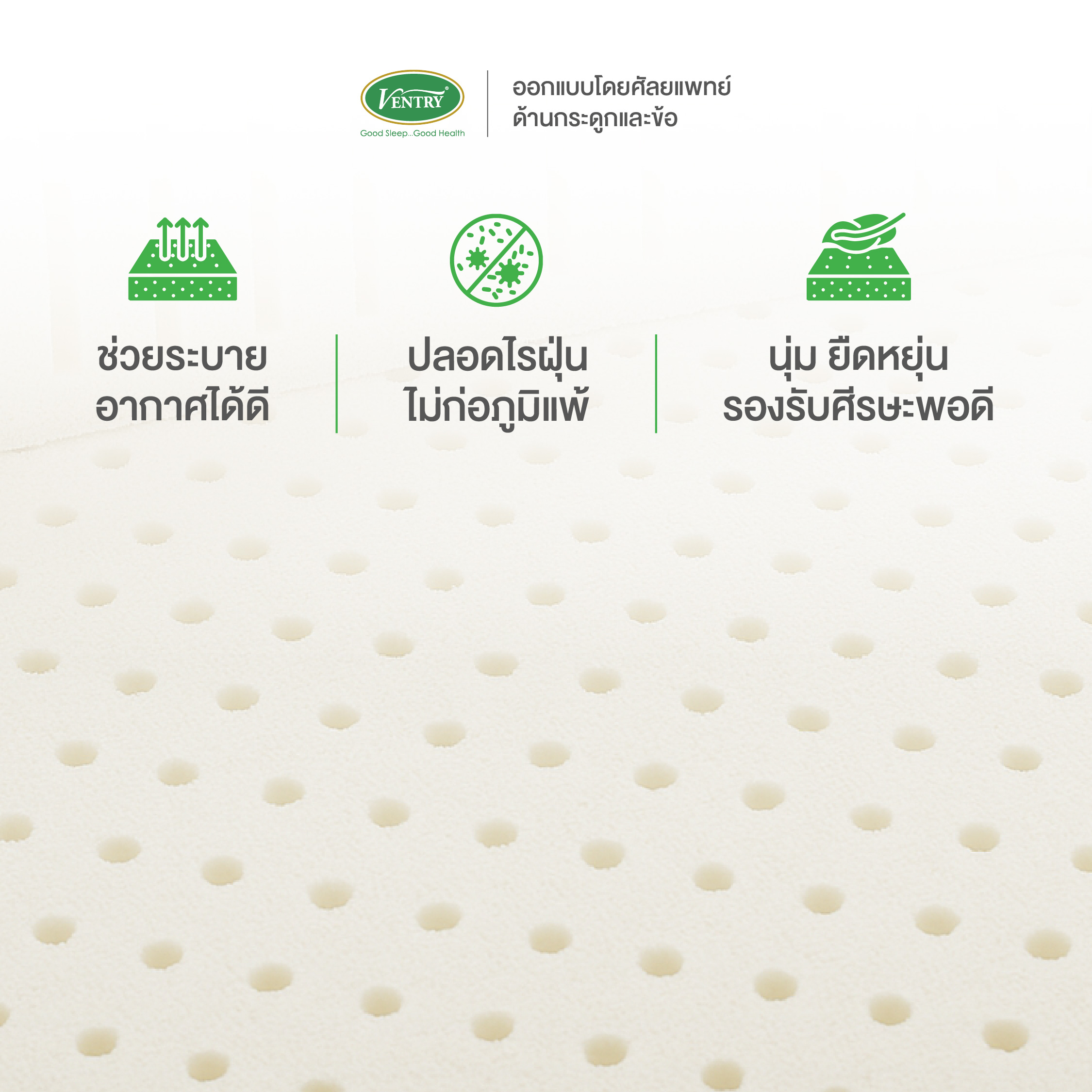 ลดอาการปวดต้นคอ มีความยืนหยุ่นดีและทนทาน เสริมฐานพิเศษ สามารถปรับระดับสูงต่ำได้ ผลิตจากยางพาราธรรมชาติ 100%